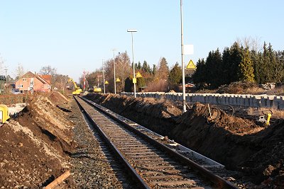 04.03.: In Hövelhof ist der Neubau des Bahnsteigs sowie der Abbau des Gleis 3 vorgesehen. Hier wurde mit Beginn der Sperrung mit den Arbeiten begonnen. Am Montag morgen