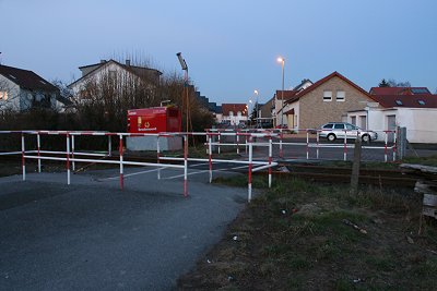 ![]() 05.03.: Noch gibt es den lang umstrittenen BÜ am Dümmerweg. Nachdem sich die Anwohner über die lauten Pfeifen der Züge beschwert haben wurde von Stadt und DB beschlossen, den BÜ zu schließen, weil die BÜ Husarenstraße und Hatzfelder Straße nicht weit entfernt sind. |