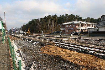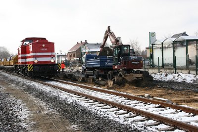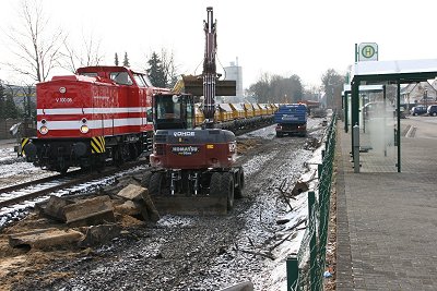 ![]() 22.03.: Bagger im Gleis 1. Das Gleisbett muß noch erneuert werden |