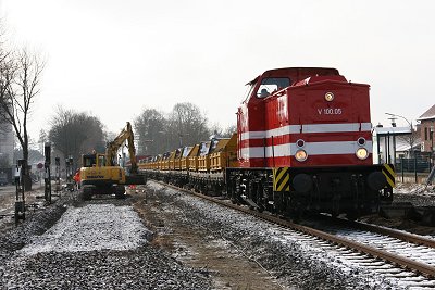 ![]() 22.03.: Die V100 des Schotterzugs |