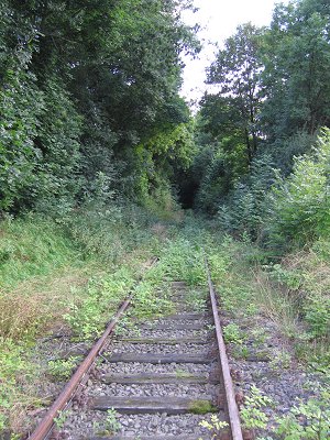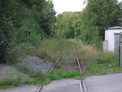 ![]() Bahnhof Ahden Noch liegt das Gleis, aber zu sehen ist es fast nicht mehr |