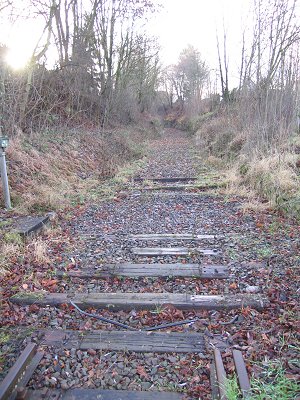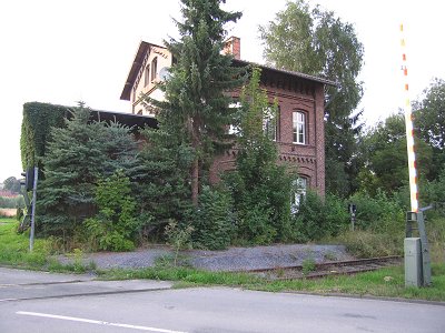 | Das alte Empfangsgebäude hat zwar auch schon bessere Tage gesehen, aber es befindet sich in Privatbesitz und wird damit den Streckenabbau überleben. |