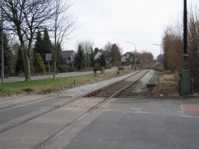 liegen die Schienen bereit. Ein Rückbau des BÜ Wassermannweg ist geplant.