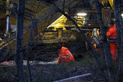 ![]() 14.03.: Die eigentliche Baustelle unter dem Zug. |