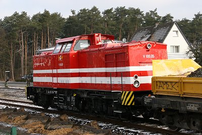 ![]() 22.03.: Die V100 des Schotterzugs |
