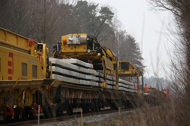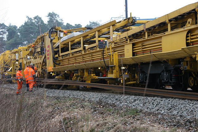 Am 19.03. hat der Zug gute 2km Gleis von Hövelhof bis zum Bahnübergang Hövelrieger Straße erneuert. Der Zug war mit allen