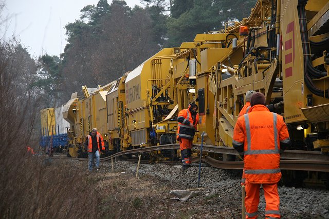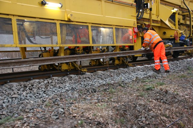 Als der Zug durch war, folgten noch Arbeiter, die noch Schrauben nachzogen und die Gleistechnik wieder einbauten. Zwei Tage später