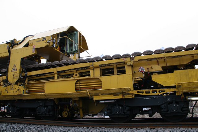 Schotter: dieser Wagen kann auch schottern. Nun folgen nur noch Technikfahrzeuge und die Kolonne, die alles