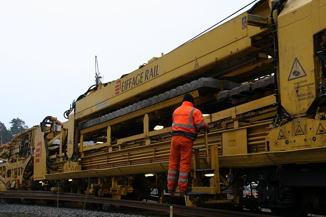 Schwellenwechsler: der Schotter wird geglättet und gerichtet