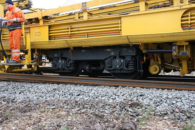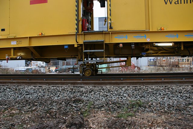 Schwellenwechsler: der Transportradsatz schwebt in der Luft.
