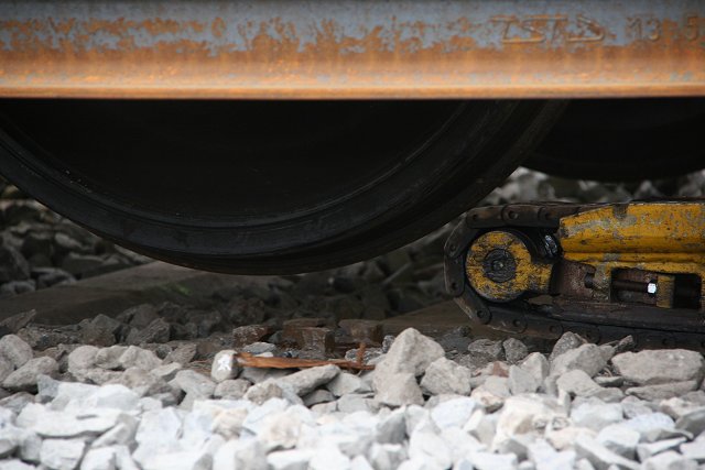Schwellenwechsler: oben schwebt die alte Schiene, unten die Neue