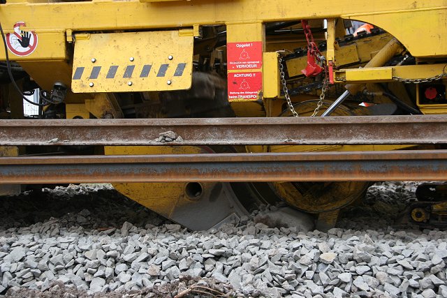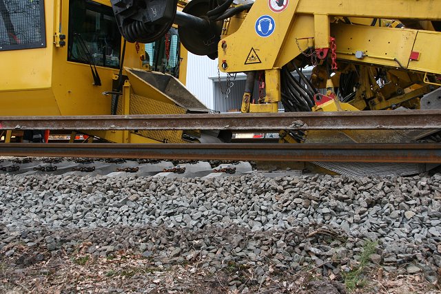 Festschrauber: der seitliche Schotter wird an das Gleis geschoben
