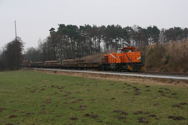 dem neuen Gleis. Die Vorbeifahrt des reinen Arbeitsteil des Zug an meinem Fotostandpunk dauerte fast eine Stunde. Die folgenden