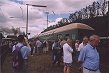 Fotografen versahen, war der Zug auch schon am Objektiv vorbei. Im Übrigen war das Fest ein voller Erfolg. 50000 Besucher wurden erwartet, 70000 kamen. Der Bahnhof platzte ab dem Morgen aus allen Nähten. Zeitweise wurde es so eng, daß der Zugang zum Bahnhof nur noch über den Tunnel von der Bahnhofstraße möglich war. Wer raus wollte, mußte am Stellwerk vorbei, in der Stadt ging das Geschiebe dann weiter. |