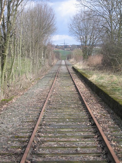 29.03.: Blick von Th�len nach Alme. Am Ende des Gleises geht es steil bergab....