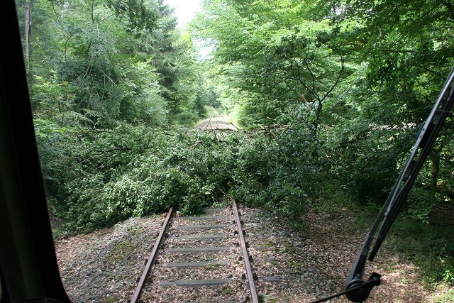 Der Grund fr die Fahrt mit 798 729 in den Wald: eine Eiche liegt quer