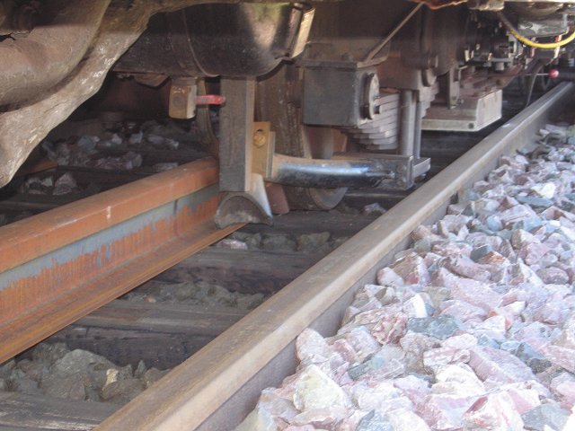 ![]() Sie stehen auf einer Gleitschiene, die dafür sorgt, daß der VT wieder ins Gleis wandert. |