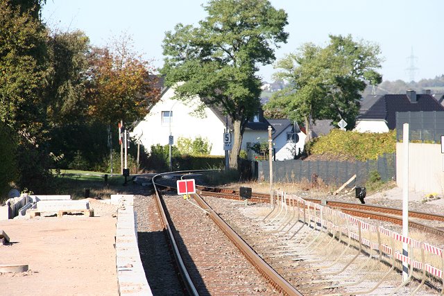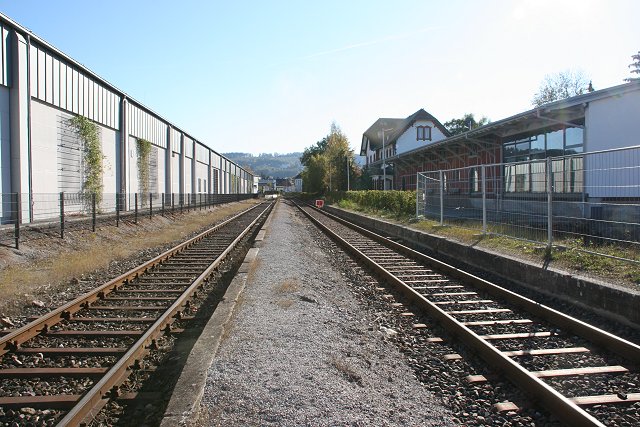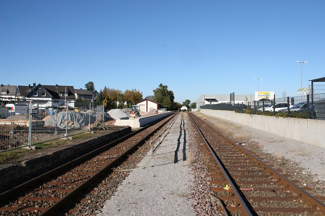 ![]() Seit 2008 ist vom Bahnhof nicht viel mehr als die beiden Gleise vorhanden. (Bild von Meinolf Wördehoff) |